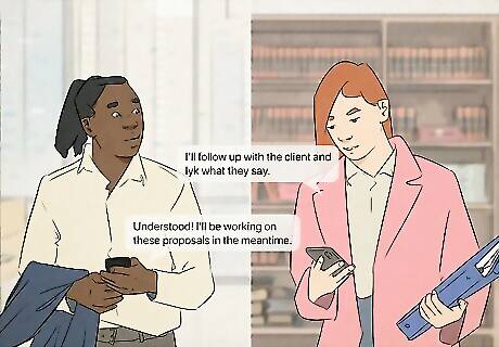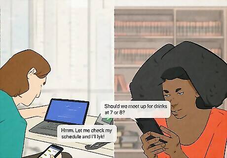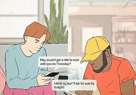 Follow up after a while if they don’t update you. However, be careful not to pester the other person. Wait a reasonable amount of time for their response, depending on how urgent your question or attempt to make plans was. If they still haven’t responded for a while and you need to get an answer soon, you can text or message them again. You: “Wanna see a movie tomorrow night?”Them: “Sounds fun, but not sure if I can make it—I’ll lyk!”You: “Okay!”You (the next morning or afternoon): “Hey, just checking in again! Any update on movie plans?”