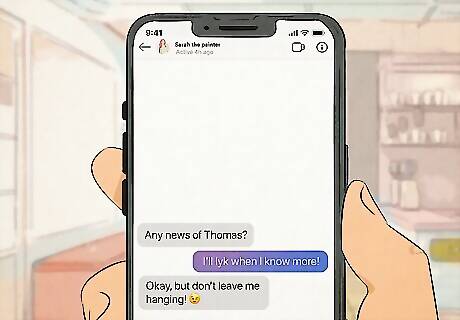 Promise someone more information in the future with “LYK.” If you don’t have all the information on a situation yet but plan to find out, you can use LYK to assure someone that you’ll give them an update with more info later. For instance: Them: “Did you hear back from Robin yet?”You: “Nope. I’ll lyk when I do!”