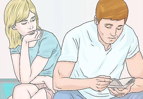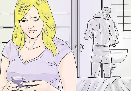 Ask yourself if he seems more distracted or distant. If he is usually a very attentive, supportive partner who asks you how your day is and enjoys having long conversations with you over dinner, and then suddenly appears uninterested in your day or bored by long conversations with you, this may be a sign his interest or engagement is focused elsewhere and not on you. Your partner may also lose interest in domestic activities like spending time with the kids, fixing up the house, mowing the lawn, etc. He may also spend more time on his phone texting or on the computer in private chat rooms or social media pages. If his phone or computer use goes up dramatically or if he becomes secretive about his phone or computer use, this may be a red flag.