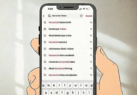 Don't search for "full screen" or "horizontal." Sorry, you're going to have to wait until a full-screen video pops up in your feed naturally! If you search for a full-screen or horizontal video on TikTok and tap Full Screen, you won't be able to scroll through horizontal videos. You might have to scroll for a while before you find a full-screen video. Just keep scrolling, and one will eventually appear.
