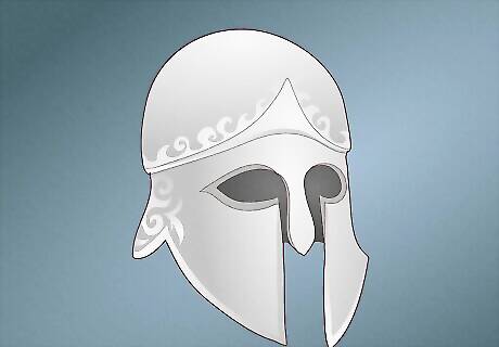 Helmets Greek soldiers used an array of helmets, including the Corinthian, and later the Phrygian and Chalcidian helmets. The Corinthian helmet, developed around 600 BCE, looked a lot like your stereotypical idea of a Greek helmet: bronze, covering the entire head with openings for the eyes and a slit for the mouth. The Phrygian and Chalcidian helmets were lighter, and it was easier to see while wearing them. The Phrygian helmet looked more like a cap than a traditional helmet, covering the top of the head and coming to a point. The Chalcidian helmet was an evolution of the Corinthian, with less metal covering the face (just a dome atop the head, cheek pieces, and a nasal bar). Beyond greaves, torso armor, and a helmet, ancient Greeks didn’t actually wear a lot of armor. This gave them greater freedom but left them vulnerable to attack in several areas (including the neck and bladder).