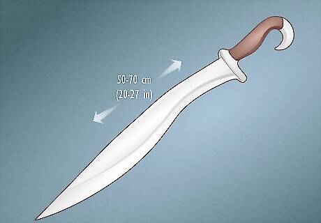 Kopis sword Compared to the xiphos, the kopis (which means “chopper” in Greek) was heavier with a forward-curving blade. Kopis was actually the term for any heavy, curved knife used for cutting meat, but it also referred to the single-edged “cut and thrust” sword used in battle. The one-handed kopis blade usually measured 50 to 70 cm (20 to 27 in) long and was most often used by hoplites mounted on horseback. Later examples of the kopis from Macedonia were actually on the shorter side, measuring around 48 cm (19 in) long.