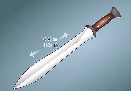 Xiphos sword Bladed weapons in ancient Greece took many forms, the most popular of which were the xiphos and kopis swords. The xiphos was a straight, double-edged short sword typically around 45 to 60 cm (18 - 24 in) long. This type of sword was designed specifically for use in very close combat. Hoplites in a tight phalanx would use a xiphos, although the xiphos was normally considered a secondary weapon to the spear. During the Greco-Persian wars, Spartan soldiers may even have used xiphos swords as short as 30 cm (12 in) long! While popular belief says that xiphos were once made from bronze, this is unverified. Only xiphos made from iron have ever been discovered. Earlier, in the Bronze Age, Mycenaeans (the civilization in ancient Greece from around 1600 to 1100 BCE) did forge bronze swords, but those were precursors to the xiphos and kopis. For instance, one Mycenaean sword forged with bronze in its early days (and later iron) was called the Naue II.