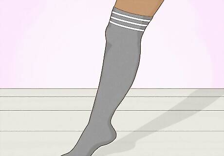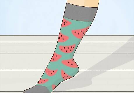 Match your socks to your shoes or outfit. Look for socks that will coordinate with the pattern and colors of your outfit, but also pay attention to the dressiness. For instance, cotton tube socks might be perfect with shorts and a T-shirt, but they’d probably be all wrong for a job interview. Opt for a sock length that goes with the type of shoe you’re wearing. If you’re wearing high-top sneakers, for instance, you’d want a mid-crew or higher so your shoes don’t rub your ankles. EXPERT TIP Dina Scherer Dina Scherer Wardrobe Stylist & Personal Shopper Dina Scherer is an Image and Wardrobe Stylist and the Founder of Modnitsa Styling, based in Sarasota, FL. With over a decade of experience, Dina specializes in color analysis, style development, closet editing, and personal shopping. She helps her clients elevate their personal style and curate a wardrobe aligned with their lifestyle. Modnitsa Styling has been featured in Business Insider, the New York Times, The Strategist, Bloomberg, and more. Dina holds degrees in Advertising and Marketing, Fashion Merchandising, and a Certificate in Image Consulting from the Fashion Institute of Technology. Dina Scherer Dina Scherer Wardrobe Stylist & Personal Shopper Wear socks that match your boots to create an uninterrupted line. This will create a longer line along your leg, which just looks more elegant.
