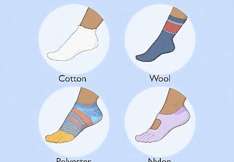Choose socks that fit you well. Pick socks that are the right size for your foot, and that aren’t too loose or too tight. If they’re too tight, they’ll squeeze your feet and impact your circulation. But if they’re too loose, they’ll bunch up around your feet, which can add friction and lead to blisters. Also, consider how the socks fit with the shoe. If you’re wearing a tighter shoe, you might need a thinner pair of socks—thick socks may make the shoes uncomfortable.