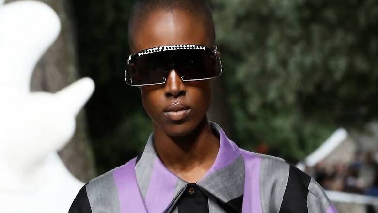 The Resort 2019 collection featured many accessories, with hats -- in both sophisticated and wilder styles -- belts, mask-like sunglasses and extra-large earrings. As for footwear, Louis Vuitton picked thigh boots as the mid-season star, with flat, chunky, sneaker-like soles, creating a futuristic style with a sporty feel.